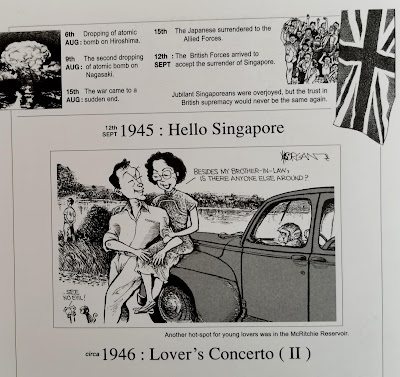 In his sketches, he adds his own signature twist to well-recorded events, such as the 1940s courtship of Mr Lee and Madam Kwa in Singapore and England. Drawings based on photos of the couple together in a park, for example, include curious animals in the background.
